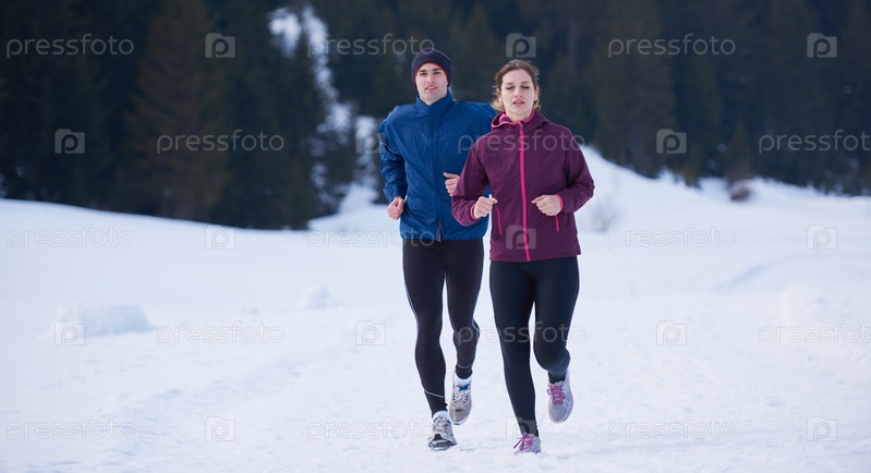 Бег трусцой на свежем воздухе на снегу