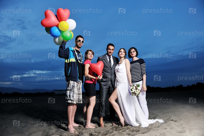 Группа счастливых молодых на пляже