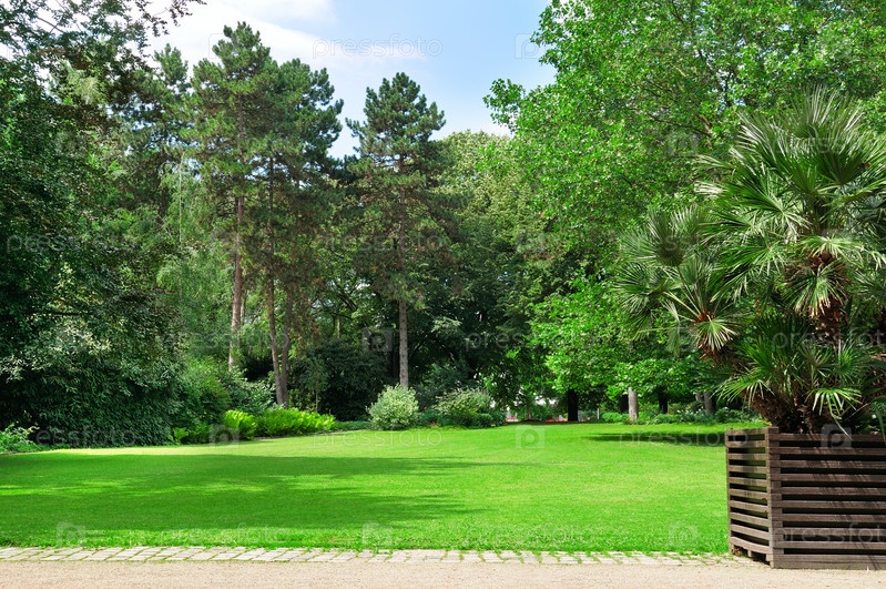 Прекрасный парк и зеленые газоны