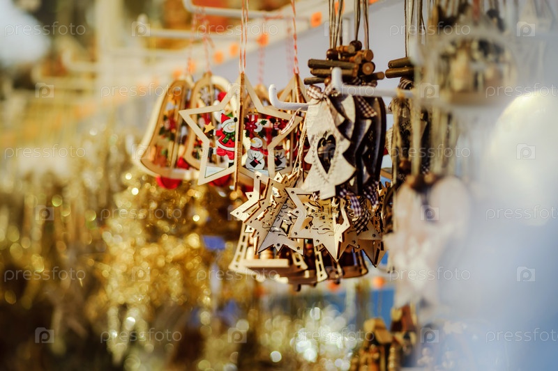 Традиционный Рождественский рынок с сувенирами ручной работы, Страсбург, Эльзас, Франция
