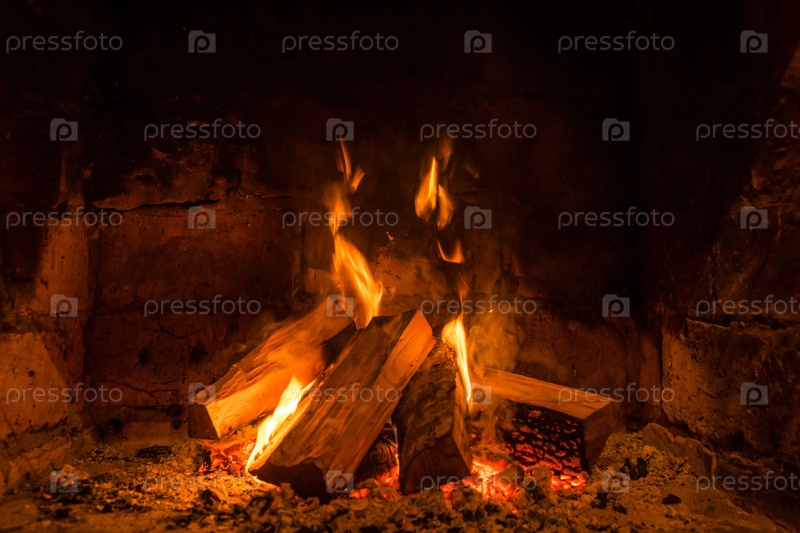 Огонь горит в камине
