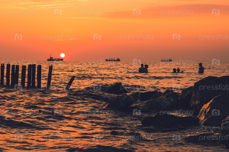 Красивый закат на берегу Черного моря