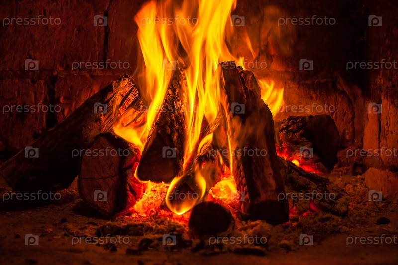 Огонь горит в камине