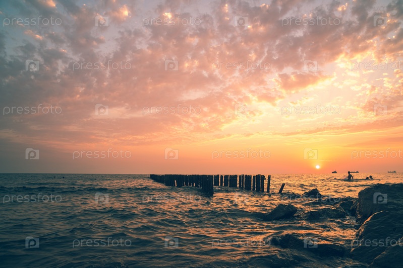 Красивый закат на берегу Черного моря