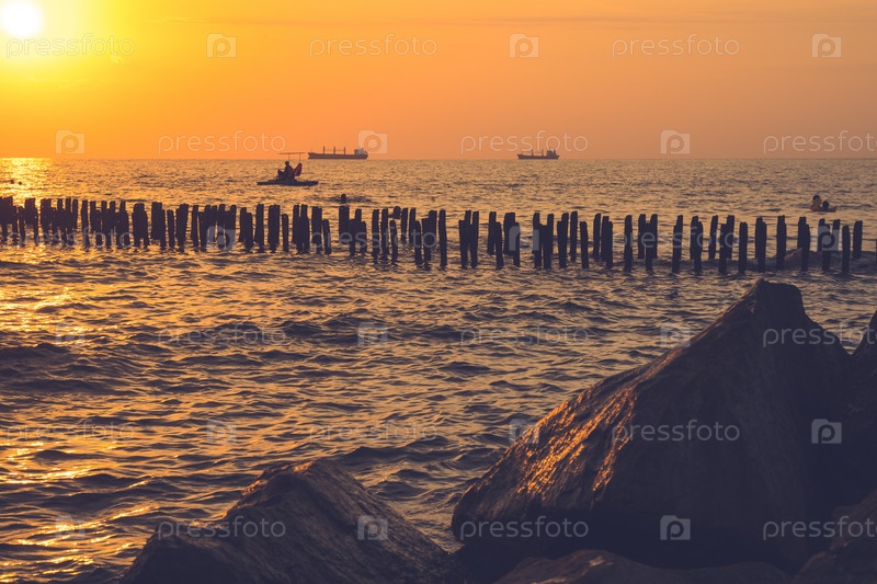 Красивый закат на берегу Черного моря