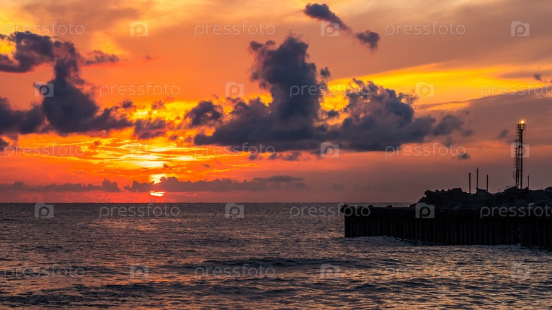 Красивый закат на берегу Черного моря