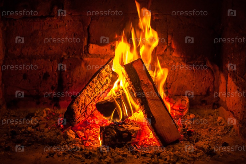 Огонь горит в камине