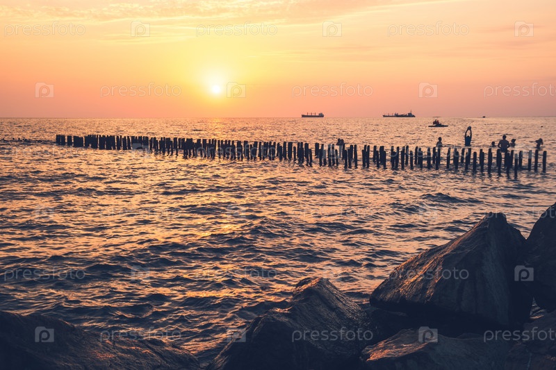 Красивый закат на берегу Черного моря
