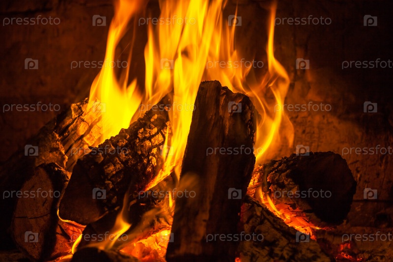 Огонь горит в камине