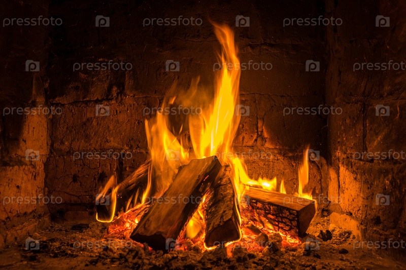 Огонь горит в камине