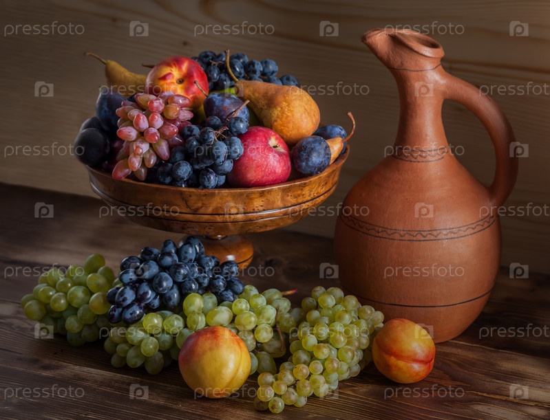 Осенние фрукты натюрморт с грузинским кувшином
