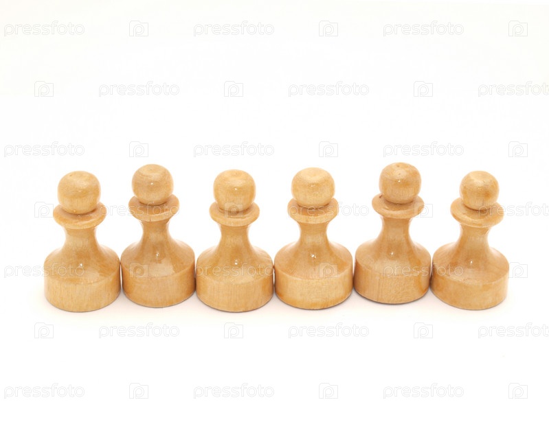 Белые пешки стоят в ряд на белом фоне