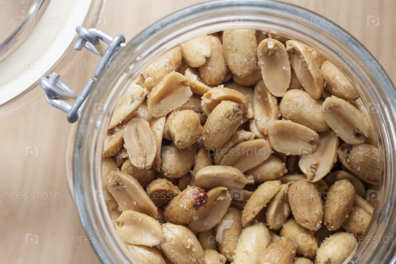 Банка с жареным соленым арахисом