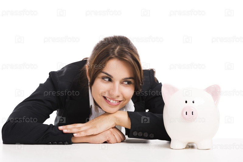 Деловая женщина с копилкой