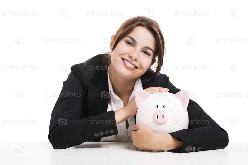 Деловая женщина с копилкой