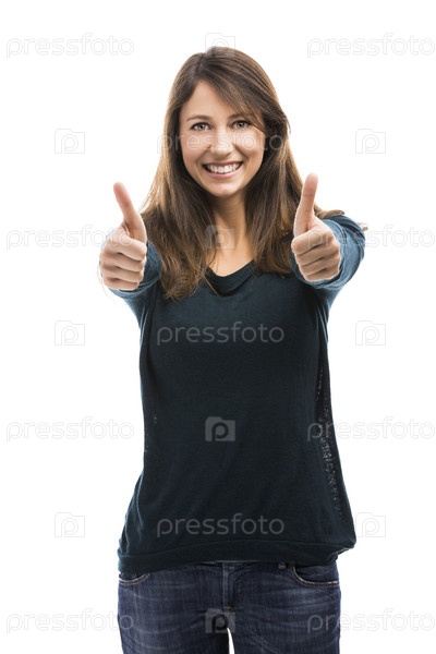 Красивая женщина с большими пальцами вверх