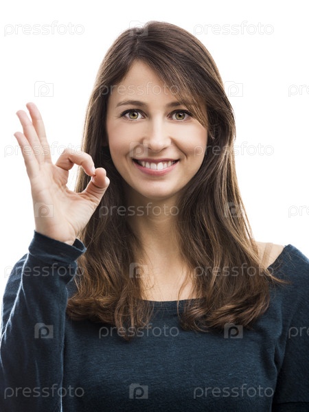 Красивая женщина показывает жест ОК