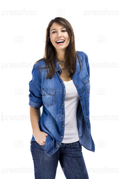 Красивая женщина, стоящая на белом фоне