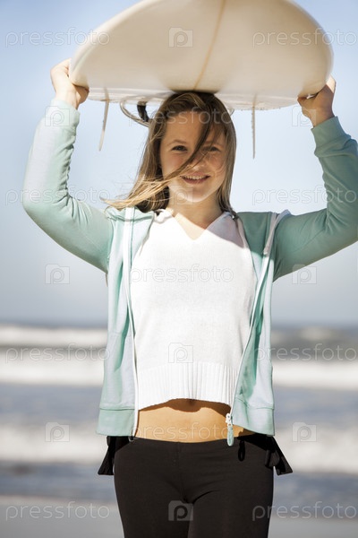 Девушка с доской для серфинга