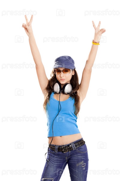 Молодая девушка слушает музыку