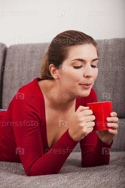 Женщина отдыхает с чашечкой кофе