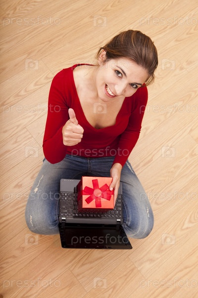 Женщина на полу с подарком