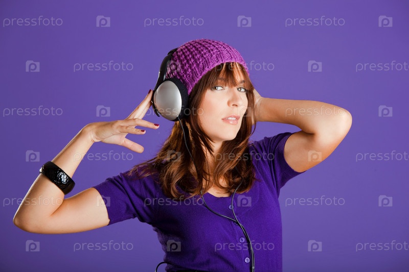 Красивая женщина слушает музыку