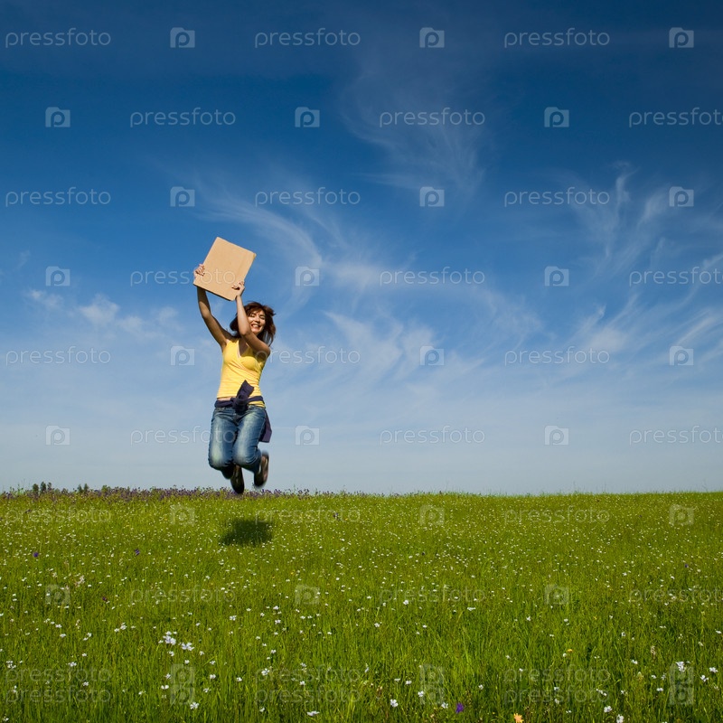 Девушка с бумажным плакатом