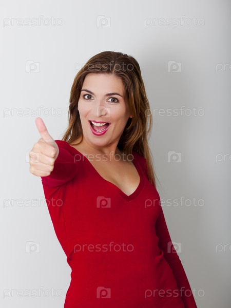 Счастливая женщина с пальцами вверх