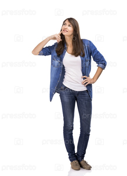 Красивая женщина, стоящая на белом фоне