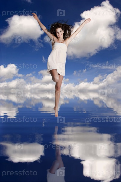 Девочка прыгает по воде