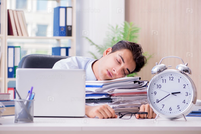 Бизнесмен спит в офисе
