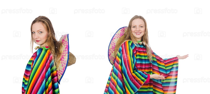 Красивая девушка в мексиканском пончо