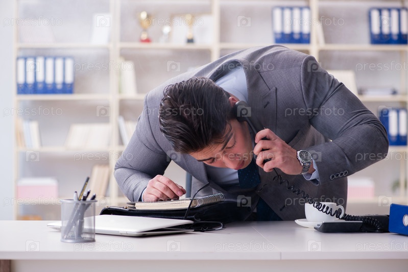 Бизнесмен во время пожарной сигнализации в офисе