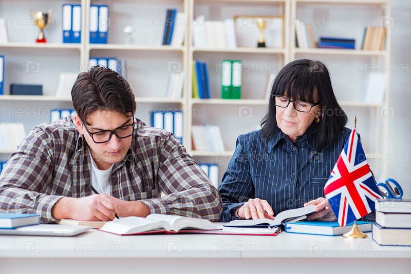 Молодой иностранный студент во время урока английского языка