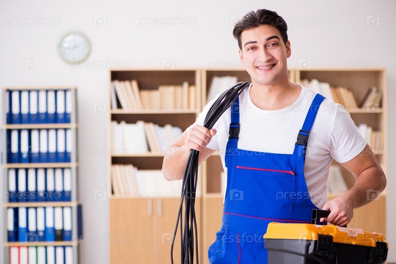 Молодой электрик с кабелем