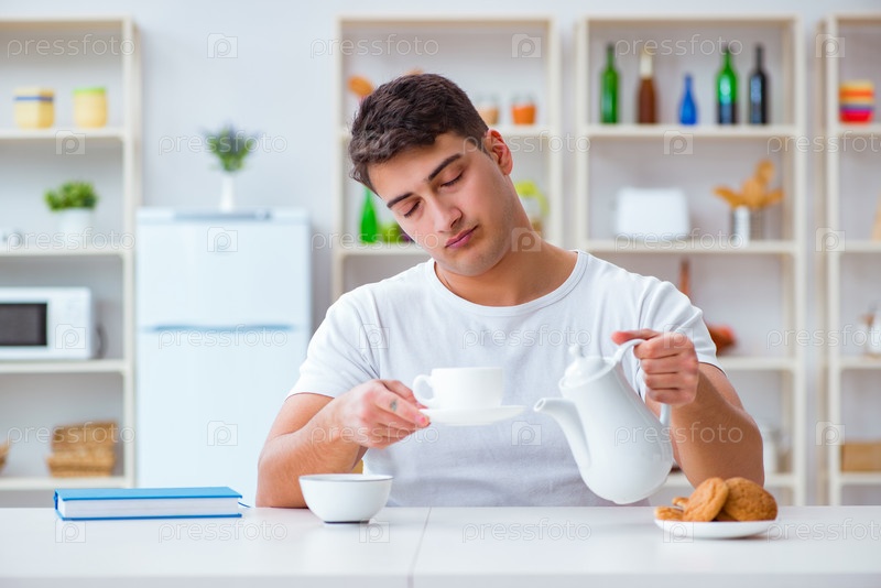 Человек засыпает во время своего завтрака после сверхурочной работы