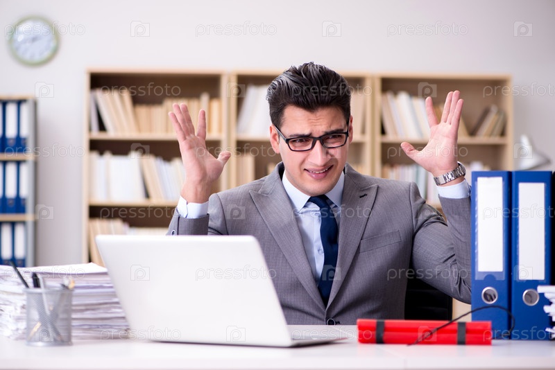 Бизнесмен с динамитом в офисе
