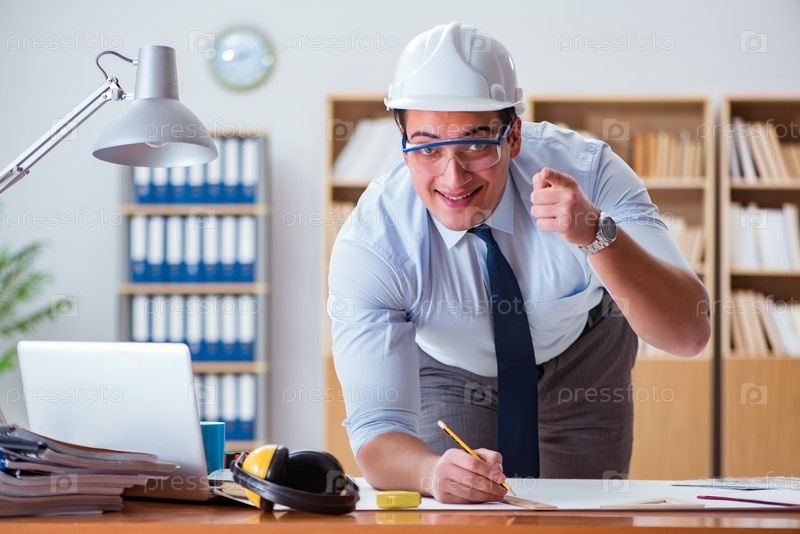 Инженер над чертежами в офисе
