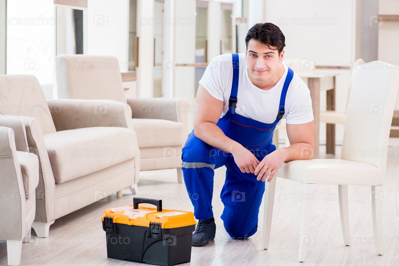 Ремонтник работает в магазине