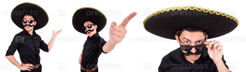 Забавный человек, одетый в мексиканское сомбреро