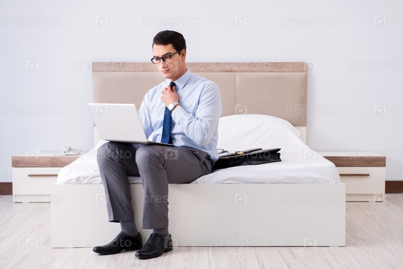 Предприниматель работает в гостиничном номере