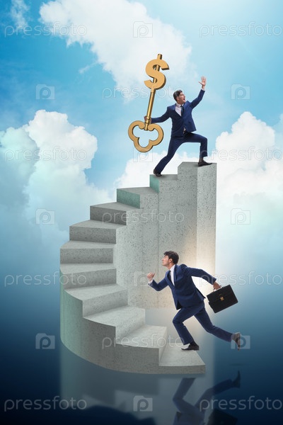 Бизнесмен с ключом к успеху на вершине карьеры