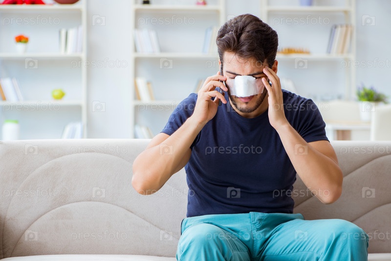 Молодой человек восстанавливается после пластической хирургии носа
