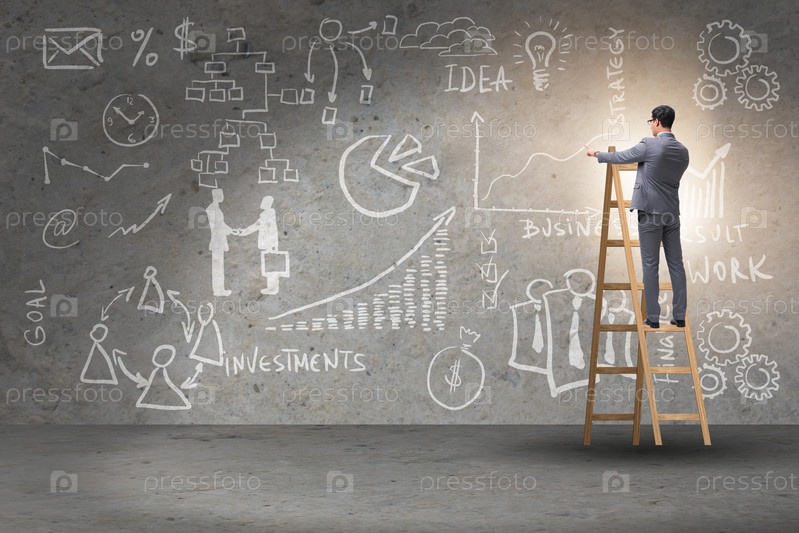 Бизнесмен на лестнице в бизнес-концепции