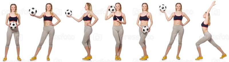 Женщина футболист на белом фоне