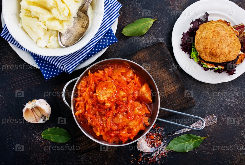 Жареная капуста и картофельное пюре