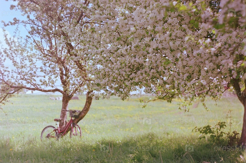Велосипед в яблоневом саду