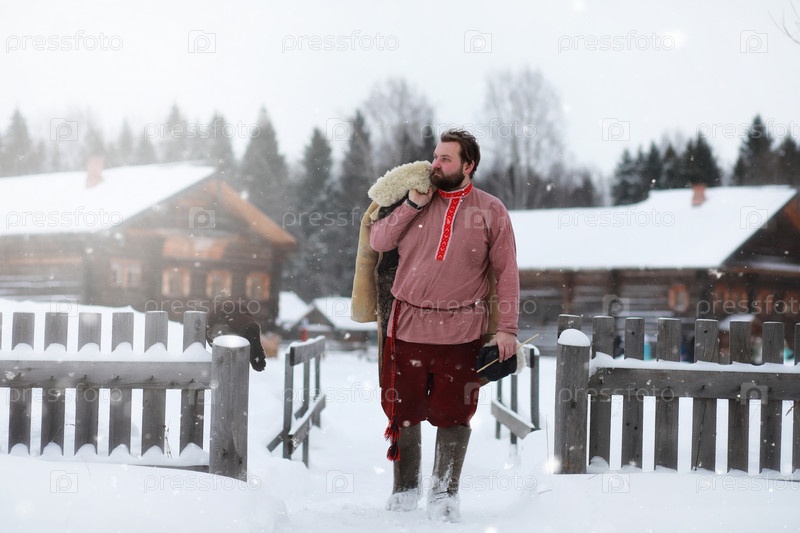 Традиционный зимний костюм крестьянина средневековья в России