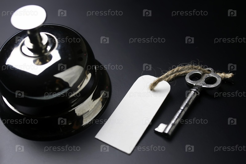 Колокольчик и ключ на стойке регистрации в отеле